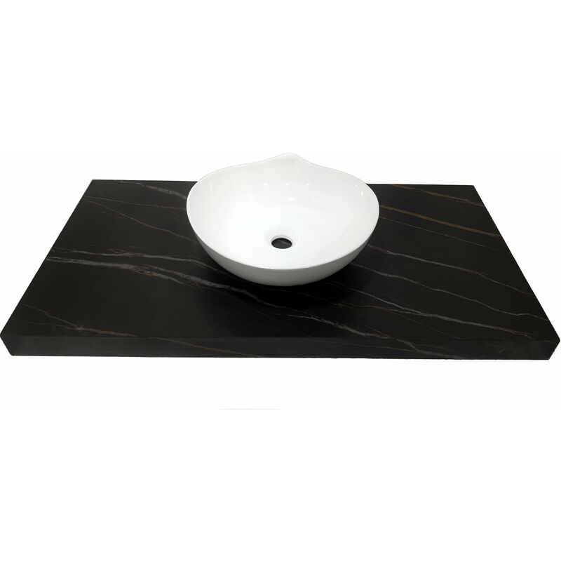 Piano di appoggio da bagno in pietra sinterizzata per lavabi d'arredo. LAVABO ESCLUSO. Prodotto esclusivo Esolution SRL, è compreso di staffe di sostegno a L in metallo, per fissarlo in modo solido e sicuro alla parete. Disponibili diverse misure e colori per potersi adattare ad ogni stile di arredamento del vostro bagno, questo solido piano è completamente privo di porosità, non assorbe, non si macchia ed è resistente a batteri e muffe e si può pulire facilmente con un panno e acqua calda. La mancanza di micro difetti inoltre evita il verificarsi di tensioni o punti deboli, permettendo al prodotto di durare nel tempo. Ma cosa è di preciso la pietra sinterizzata? La pietra sinterizzata è un nuovo materiale artificiale molto versatile per i numerosi impieghi nel campo dell'edilizia e dell'arredamento. E' formata da una speciale miscela di minerali naturali selezionati, compattati attraverso un processo in cui le particelle si legano tra loro perfettamente, senza l'uso di resine e