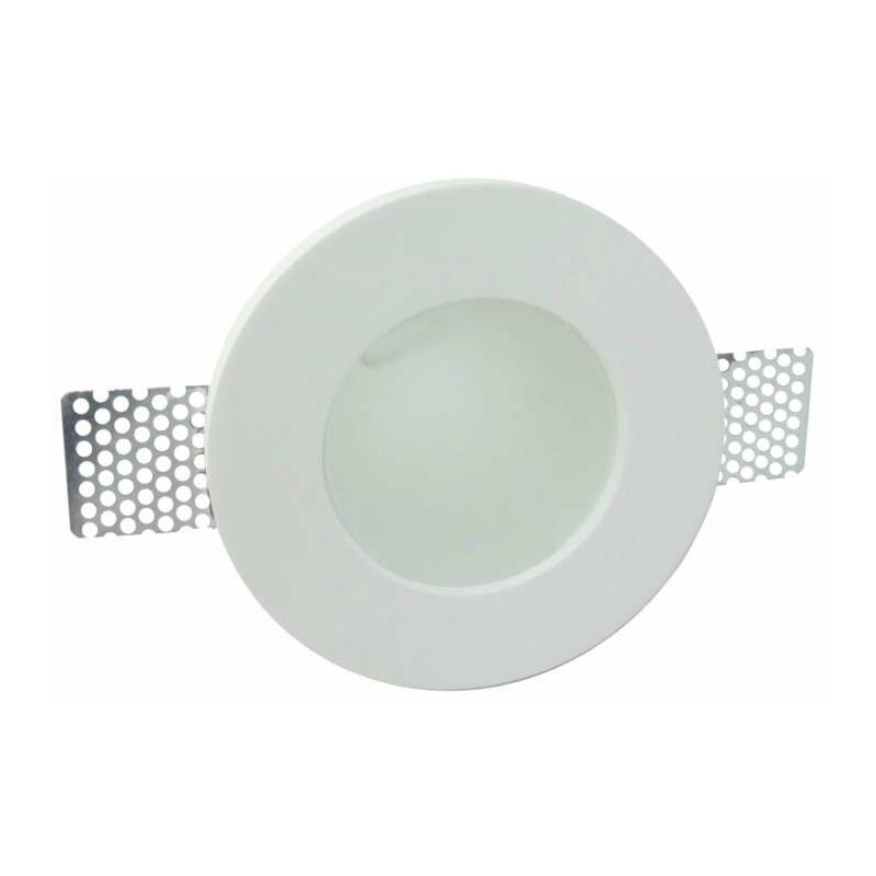 Portafaretto in gesso porcellanato di altissima qualità e resistenza, verniciabile a scomparsa. Modello MC-9130G con copertura faretto in vetro satinato Fornito con portalampade MR16 GU5.3 in ceramica e anello per il bloccaggio della lampadina. Dimensioni: 120mm diametro 55mm altezza Certificato Ce - Rosh Disponibili presso il nostro e-commerce altre misure e forme e lampade led da abbinare al faretto