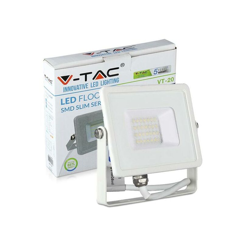 20W LED Proiettore SMD SAMSUNG CHIP Corpo Bianco 6400K SKU: 444: VT: VT-20 Caratteristiche del prodotto Bianco freddo, naturale e caldo Disponibile da 30W fino a 300W Migliore Qualità del corpo in lega di alluminio Resistente alla corrosione Maggiore impermeabilità/ermeticità dellinvolucro in vetro, sigillato con gomma siliconica Migliore Qualità dei componenti LED Samsung Integrato di Driver a corrente costante Integrato di Alimentazione, non necessario trasformatore esterno Installazione Passi carrai Giardini Cartelloni Campi sportivi Parcheggi etc. Specifiche tecniche Informazione generale Tipo LED SAMSUNG Chip Vita media 30 000 h Dati elettrici Potenza 20W Tensione AC: 220-240V Frequenza 50Hz Fattore di potenza >0.9 Dati tecnici Luce Colore della luce Bianco Temperatura di colore 6400K Flusso luminoso 1600 lm Indice di resa cromatica Ra >80 Dettagli corpo Materiale Alluminio Colore Bianco Funzionalità Dimmerabile No IP Protezione IP65 Tempo innesco 100% 0.001 secondo Stabilità