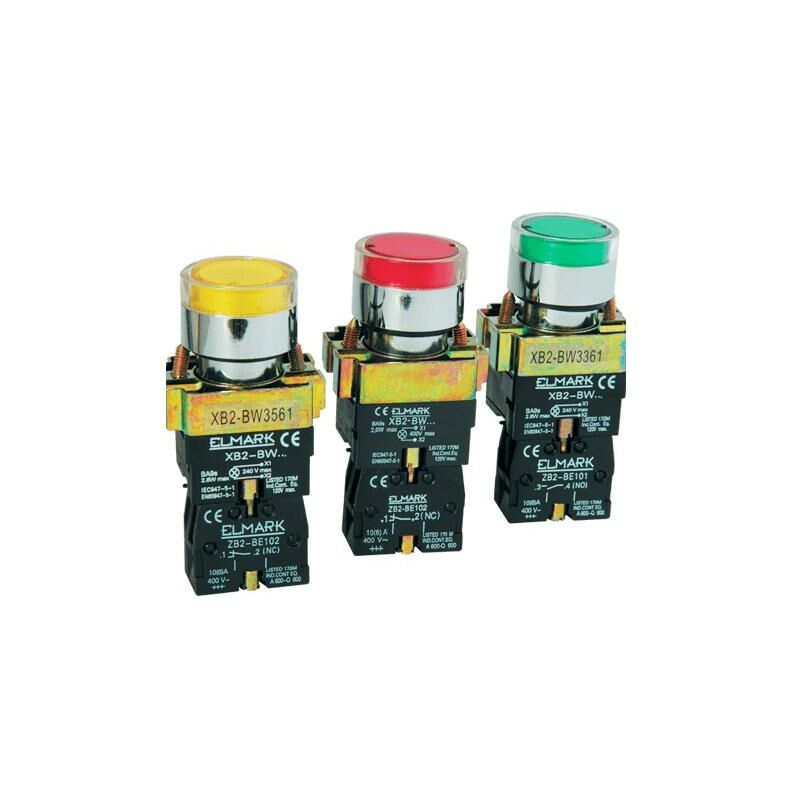 Technical characteristics: - Insulation voltage: 660V 50/60Hz - Surge volatge wear resistance: 6000V - Rated current: 6А(230V АС) 0.3А(230V DC) - IP code: IP20 - Short circuit protection: breaker 10А gG outside of the circuit - Mechanical wear resistance: 1х106 commutation cycles - Operating temperature: -20° to 70° С - Humidity: 35-85%RH - Connecting wires torque: 0.15 Nm - Section of the conductor: 1х0.5 1х0.75 1х1 1х1.5 1х2.5mm2 Mountin - To a flat metal or plastic surface with thickness: max 4m - Size of the openin Ø 22.5mm Standards: EN60947-1 EN60947-5-1 ~ Scheda Tecnica ~:Grado di protezione=IP20~:Colore=Rosso~:Marca=ELMARK~:Tipo delle prese=1NC~:Tensione dellindicazione=24V~:Corrente nominale a 400V=6A~:Garanzia=3+2~:Modello=EL2-BW~