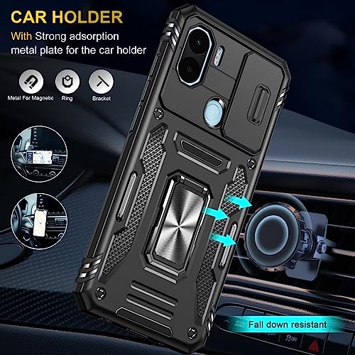 ESONG Cover per Xiaomi Redmi A2/A2+/Redmi A1/A1+,Custodia Protettiva di Grado Militare e con Scorrevole Fotocamera Proteggi/ 2 Pezzi Pellicola Vetro Temperato/360° Magnetica Anello Supporto-Nero