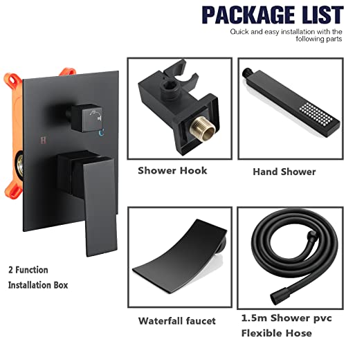 ESOP Rubinetto Vasca Bagno Nero, Cascata Manico Singolo Rubinetto Doccia Montaggio a Parete Rubinetto per Vasca da Bagno con Doccetta in Ottone, Tubo Doccia 150cm