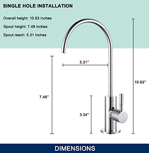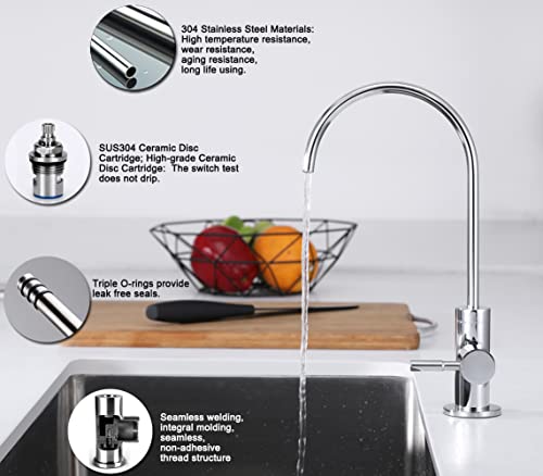 ESOW Rubinetto dell'acqua potabile 100% senza piombo, rubinetto del filtro dell'acqua per lavello della cucina, spazio non d'aria, finitura cromata lucida SUS304