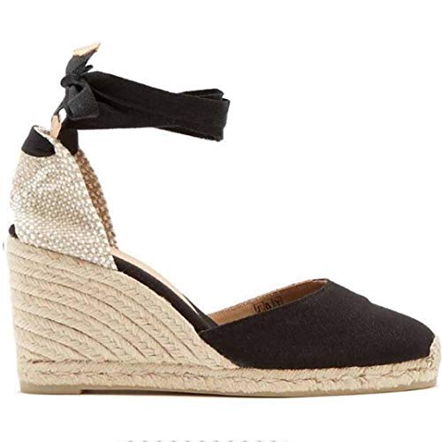 Espadrillas da Donna Summer Light Traspirante Moda Tinta Unita in Pelle Scamosciata Lace Up Low Top Zeppa Tacco 7 CM Big Size 42 Sandali con Punta Chiusa da Donna