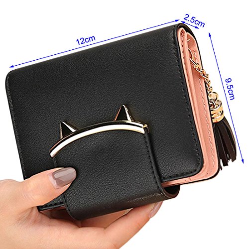 Espeedy - Portamonete da donna, piccole dimensioni, tinta unita, con nappe, stile gatto