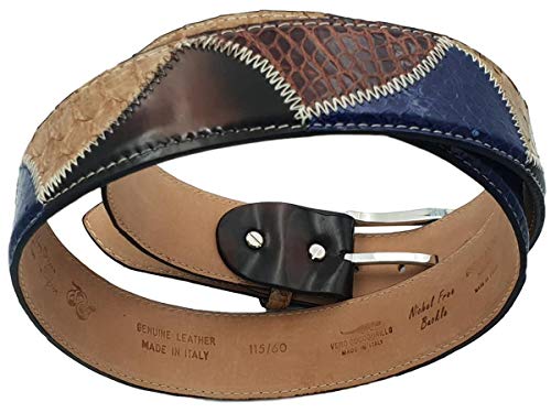 ESPERANTO Cintura Patchwork 4 cm in vera pelle di Pitone, Coccodrillo e cuoio anticato a Mano (Tg 54- LUNG TOTALE 125 CM-GIROVITA 110 CM)