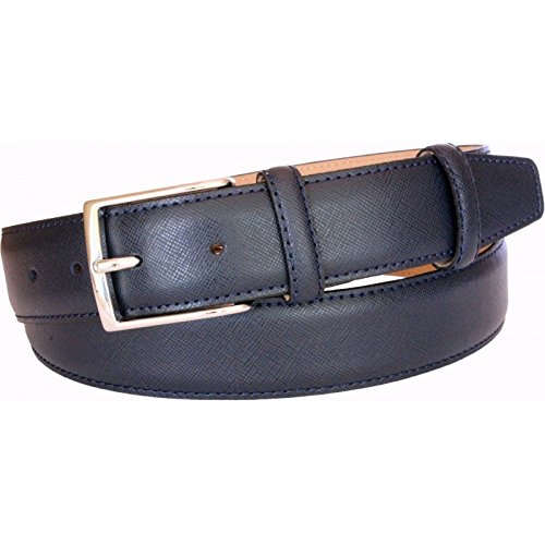 ESPERANTO Cintura 3,5 cm in vera pelle con stampa saffiano e fibbia Nichel free (Blu, Taglia 44 - Girovita 85 cm)