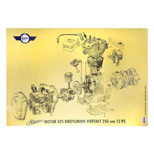 Esplosione rappresentazione colore poster (72 x 50 cm) motore 425 - einzylinder quattro tempi 250 ccm con 12 Ps - adatto per AWO