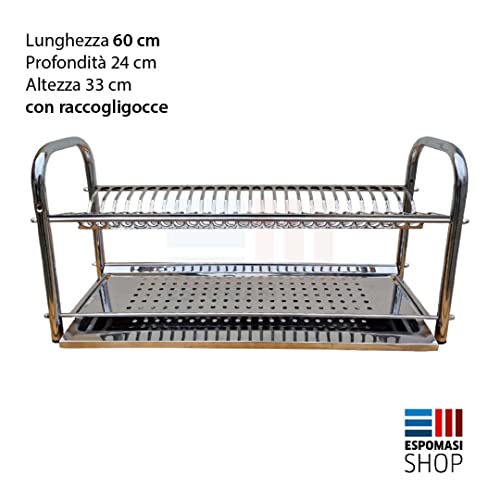 ESPOMASISHOP SCOLAPIATTI DA BASE PARETE O APPOGGIO IN ACCIAIO INOX 40 50 60 70 80 cm CON RACCOGLIGOCCE O SENZA MADE IN ITALY (60 CM CON RACCOGLIGOCCE)