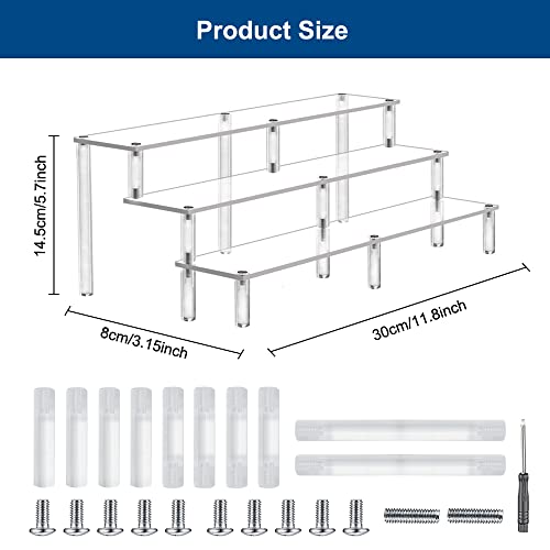 ✔️ 【La Confezione Include】 1 set di espositore plexiglass a tre livelli, dotato di un cacciavite e viti sufficienti. Dimensioni completamente assemblate: 30x8x14,5 cm / 11,8x3,15x5,7 pollici. Lo spessore del materiale acrilico da 4 mm aumenta la capacità portante e non è facile da piegare.