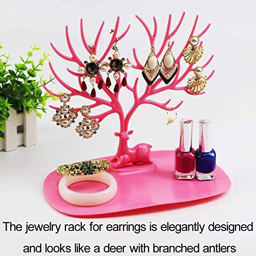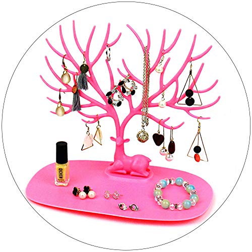 Espositore per Gioielli con Albero di Corna, Espositore per Gioielli con Vassoio e Corna di Cervo Ramificate ad Albero, per Anelli, Bracciali, Collane, Rosa