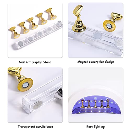 Espositore per nail art in acrilico da 10 pezzi con 3 basi per nail art espositore per nail art in cristallo magnetico, supporto per pratica nail art strumenti per nail art fai da te salone d'oro