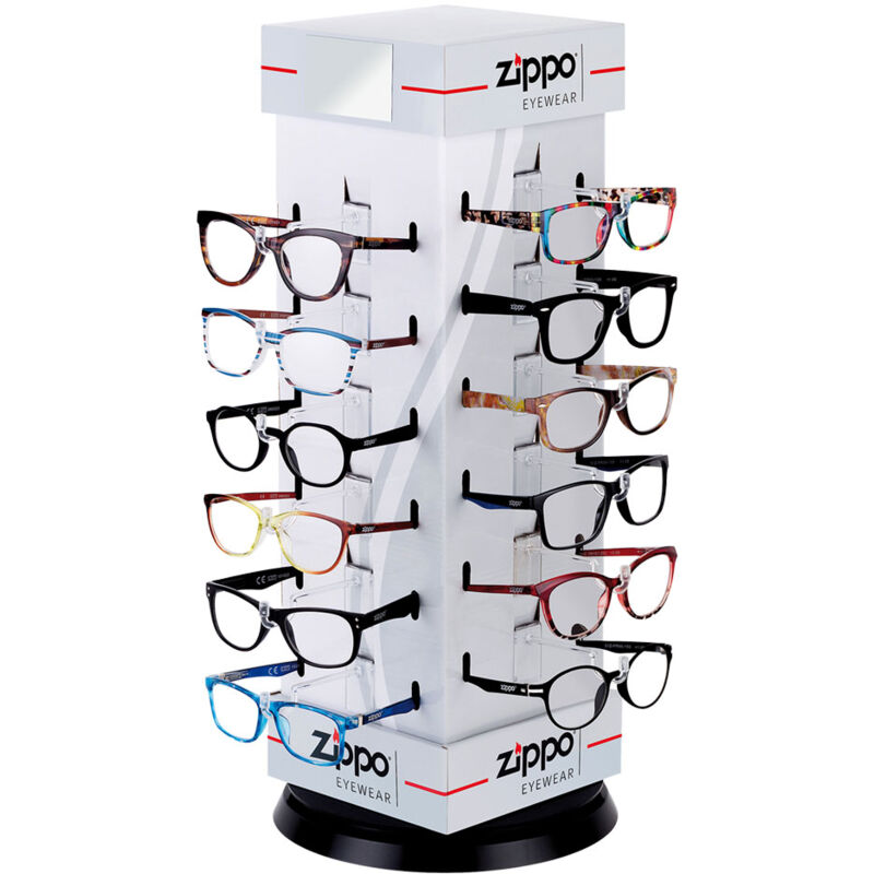 Espositore occhiali premontati per lettura '31z-pd24-be' 24 pezzi In pre-pack. Composizione box: 6 diottrie +1,+1,50,+2,+2,50,+3,+3,50, per ogni diottria disponibili 4 modelli. Indicati per presbiopia semplice. Prodotto conforme al Regolamento (UE) 2017/745 e alle norme ISO 16034:2002/COR 1:2006, EN 14139:2010. Realizzati in materiali anallergici, acrilico termoplastico. Aste con meccanismo Flex System. Lenti asferiche in materiale organico, sottili nelle dimensioni e con zero distorsioni, cosi' da garantire una perfetta visione periferica, particolarmente resistenti ai graffi. Centri visivi allineati, distanza tra le pupille 62 mm. Cornice caratterizzata da linee morbide ed eleganti di design italiano, abbinabili perfettamente a qualsiasi stile. In omaggio espositore girevole da banco da 24x24xh.55 cm (lxpxh). 24 pezzi Categoria dell'articolo: Tempo libero outdoor - Occhiali per lettura e protezione solare