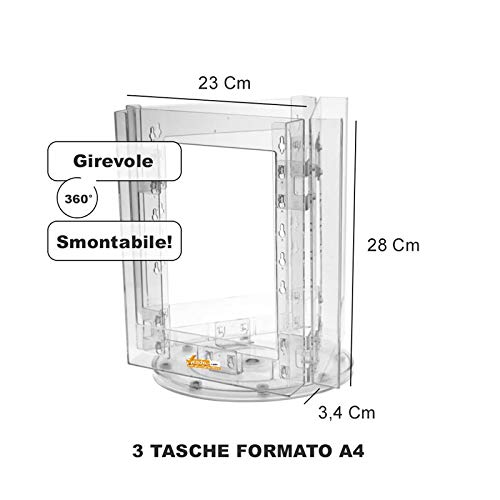 ESPOSITORE PORTADEPLIANT GIREVOLE A 3 TASCHE FORMATO A4 DA BANCO TAVOLO HOTEL