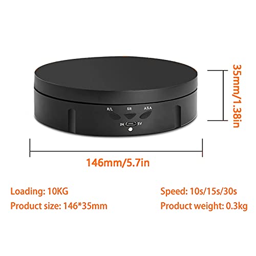 Facile da usare: supporto girevole a 360 gradi, supporto in senso orario e antiorario. Pulsante ON/OFF per cambiare la direzione di rotazione. Velocità del prodotto: 8 / 15 / 30 / secondi. è possibile regolare in base alle varie esigenze.