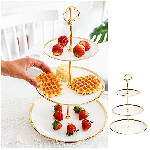 Espositore per torta a 3 piani, supporto per torta in porcellana a 3 livelli, porta torta bianco espositore caramelle frutta dessert per feste matrimoni