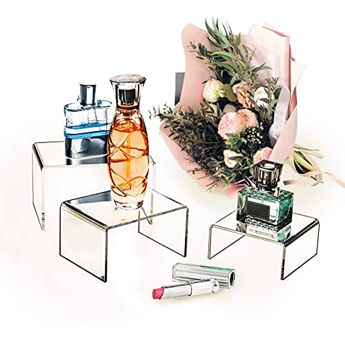 Espositori trasparenti per display in acrilico, 2 set di 3 Espositori per espositori per figurini, buffet, cupcakes e gioielli, con pellicola protettiva adesiva