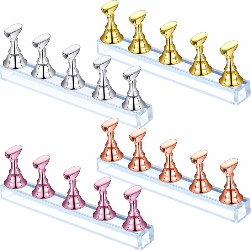 Bella combinazione: questa confezione include 4 set di rack per unghie in colori classici, ogni set contiene 1 pezzo di base per rack per esercizi in cristallo acrilico e 5 pezzi di rack per esercizi per unghie in totale, bella combinazione per poter praticare la nail art Materiale durevole: i nostri supporti per nail art fai-da-te sono realizzati in plastica e acrilico di qualità, resistenti e stabili, sicuri e non tossici da usare, non facili da sbiadire o arrugginire, disponibili per molteplici usi Oggetti applicabili: il set di supporti per unghie è pratico strumenti per manicure per l'allenamento e la pratica della nail art, adatti per la nail art. Impara la nail art per principianti, nail art bomboniera e artista del salone Design accurato: questi espositori per unghie in acrilico sono progettati con un fondo magnetico che gli consente di rimanere attaccato al magnete supporto di cristallo in modo sicuro e stabile, rendendo il tuo processo di allenamento per la nail art più