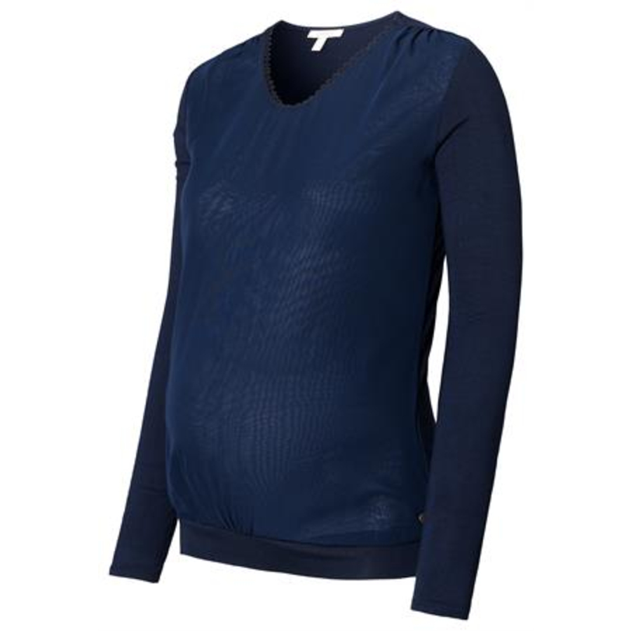 Manica lunga Il bellissimo mix di materiali e il bordo in pizzo allo scollo conferiscono a questa camicia di maternità un tocco particolarmente trendy. Il davanti è realizzato in tessuto semitrasparente, il retro in morbido jersey e l'elastico in vita garantisce un comfort ottimale dal primo al nono mese. Dettagli del prodotto: Materiale: 95% viscosa e 5% elastan Lavabile fino a 40°C