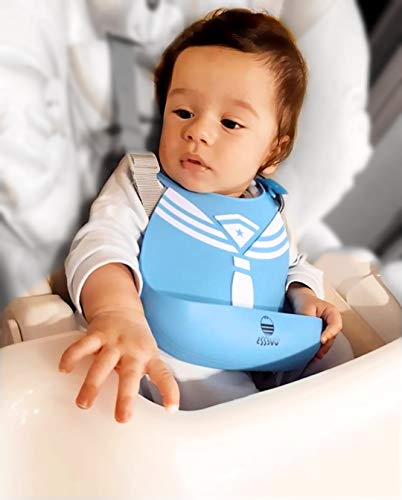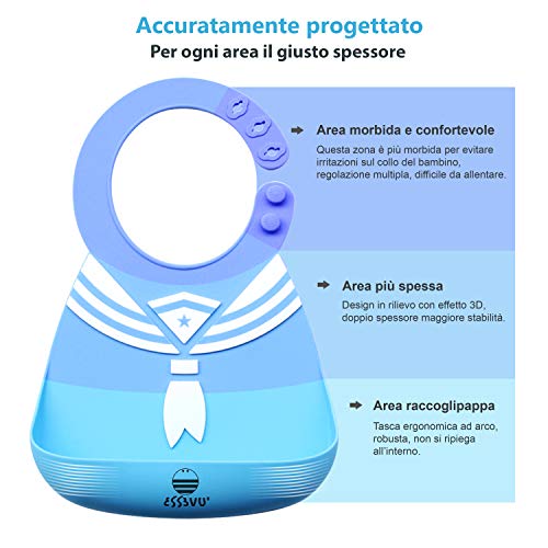 Ess3vu Bavaglino Silicone Alimentare Neonato Pappa Impermeabili Tasca Raccoglipappa Maschio Femmina Svezzamento Atossici Inodore 2a Generazione Morbido Lavabili Lavastoviglie Design 3D Certificati SGS