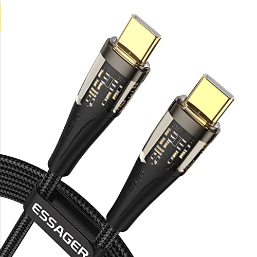 ESSAGER Cavo da USB C a USB 1m+2m 100W 20V/5A QC 4.0 Cavo da USB C a USB C Ricarica Rapida Cavo Intrecciato Adattatore Trasparente per Samsung S21 Pad Pro MacBook LG Google ecc (Nero)