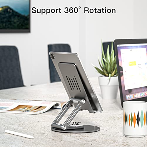 ESSAGER Supporto Tablet in Lega di Alluminio Girevole a 360°, Regolabile in Angolazione e Pieghevole per iPad Pro/Air/Mini, Telefoni Cellulari, Huawei, Surface Fino a 12,9 inch (Gray)