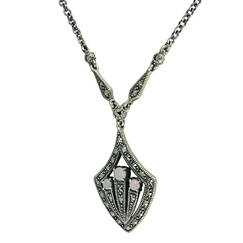 Esse Marcasite-Collana in argento Sterling stile Art Nouveau, con opale e Marcasite, lunghezza: 38-43 cm