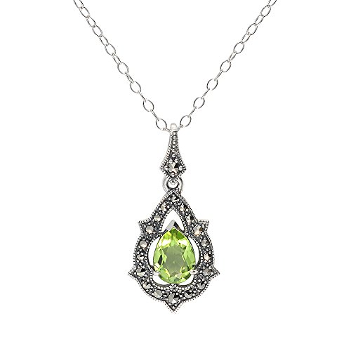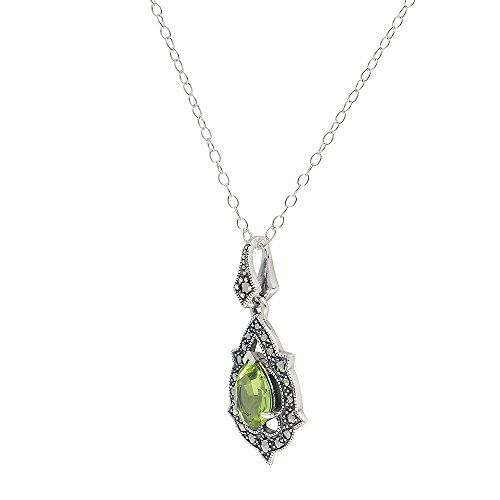 Pietre preziose: Peridoto verde taglio pera, per un totale di 1.000 carati e marcasite sapientemente impostata, per un totale di 0.490 carati.