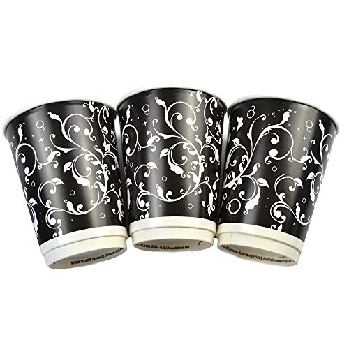 DUE ESSE S.N.C. DI SABATINI ALDO & C. PZ 100 Bicchieri 280 ML in Carta Decorato + PZ 100 Coperchio Nero con BECCUCCIO per Bevande Caldo Come Cappuccino E Caffe