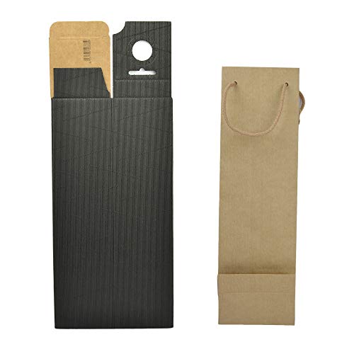 DUE ESSE S.N.C. DI SABATINI ALDO & C. PZ 10 Porta Bottiglia in Cartone Rigido Nero 35X9,5X9,5 + PZ 10 Busta Porta Bottiglia Marrone Chiaro per CONFEZIONARE Bottiglie