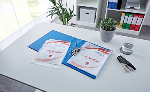 Facile archiviazione: la perforazione universale permette di inserire queste buste nella maggior parte dei raccoglitori ad anelli e l'apertura superiore facilita l'accesso al contenuto