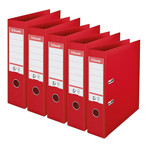 Esselte, N°1 Power, confezione da 5 raccoglitori a leva, rosso, dorso 75 mm, A4, PP, 162530