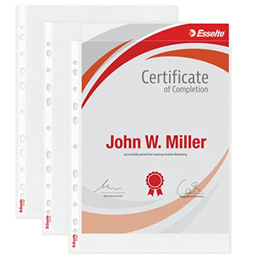Esselte Tasca perforata resistente, confezione da 25, può contenere fino a 20 fogli A4, trasparente, materiale PP 115 micron, 47187