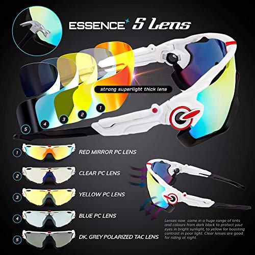 Essence' polarizzata Sport Occhiali da Sole/Ciclismo Occhiali Uomo e Donna-Sport all'aperto Sci Running Guida Golf Vela-Protezione polarizzata UV400-Accessori Inclusi-migliora la Tua Visione