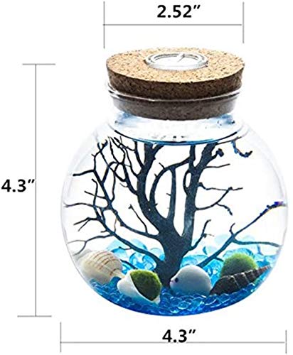 Accompagnato con: - Un barattolo rotondo in vetro soffiato misura 10,9 cm x 4. 7,6 cm, luce LED in tappo di sughero con 2 batterie CR 2032 - 2 palline Marimo circa 1,2 cm, ciottoli decorativi di vetro blu resistente al colore, un pezzo casuale di ventilatore del mare nero (corallo), alcune piccole conchiglie, una piccola balena bianca di gomma;