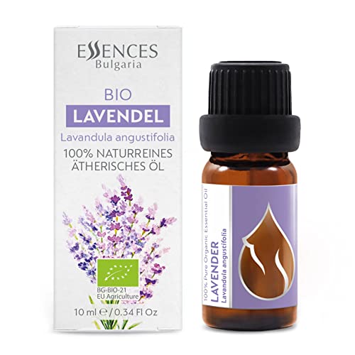 Essences Bulgaria Olio Essenziale di Lavanda Biologico 10 ml | Lavandula angustifolia | 100% Puro e Naturale | Non Diluito | Grado Terapeutico | Fattoria a Conduzione Familiare | Distillato a Vapore