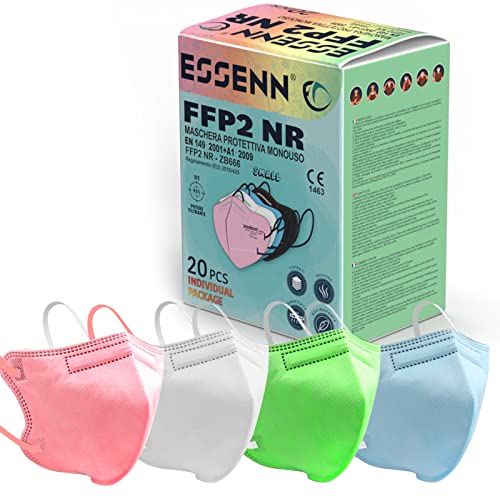 ESSENN 20 pezzi Mascherine Small Size Colorate Taglia Piccola Certificate CE1463 Confortevoli con Elastici Morbidi Imbustate Singolarmente(Colorate 20Pezzi)