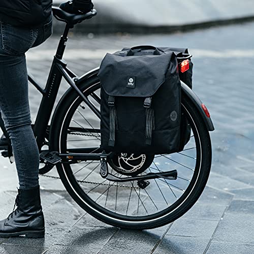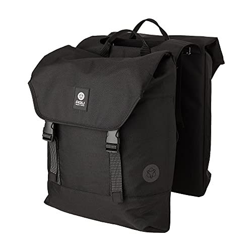 AGU Essentials DWR Urban Klickfix Borsa Bici Doppia per Portapacchi, Borsa Bici Posteriore Laterali 36L con Tracolla, Idrorepellente, Riflettente, 100% Poliestere Riciclato - Nero - 36L