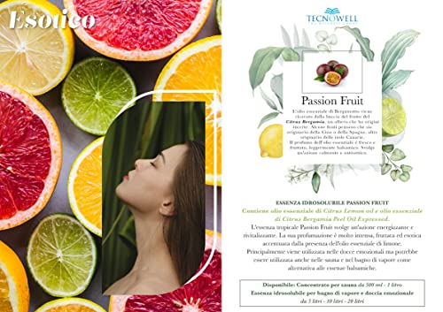 Essenza Idrosolubile PASSION FRUIT 5 litri per bagno di vapore e doccia emozionale con olio essenziale di Limone e olio essenziale di Bergamotto