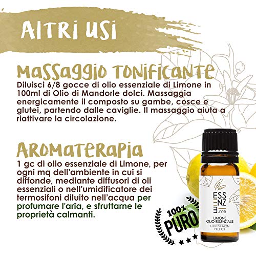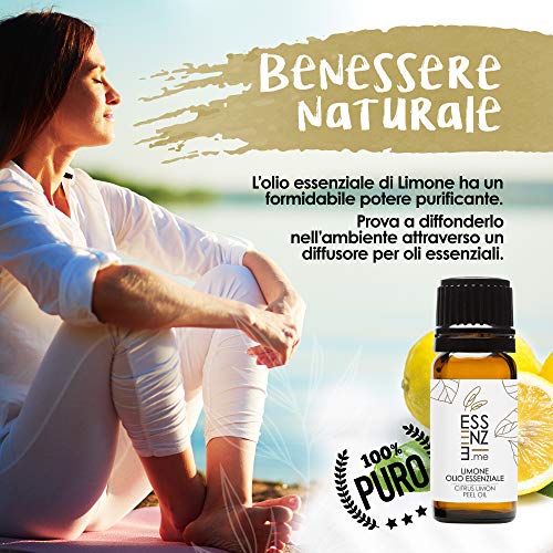 ESSENZE OLIO ESSENZIALE DI LIMONE Puro al 100% Naturale, Aromaterapia, olio essenziale per diffusori 10ml Prodotto Made in Italy