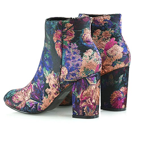 ESSEX GLAM Donna Casuale Heel Di Blocco Nero Floreale Stivaletti Le Signore Elegante Festa Scarpe EU 37