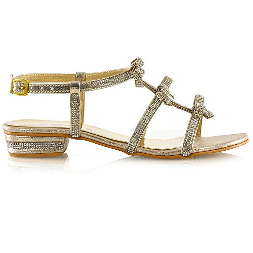 ESSEX GLAM Donna Da Estate Piatto Sandali Le Signore Diamante Fiocco Cinghietti Scarpe