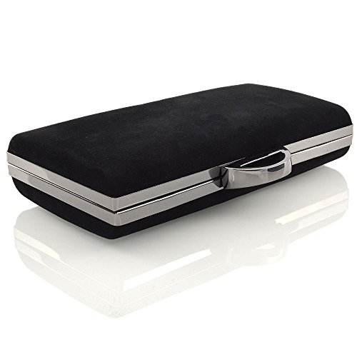 ESSEX GLAM Nero Ecopelle Scamosciata Pochette da Sposa Sera e Festa
