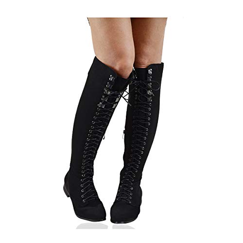 ESSEX GLAM Stivale Donna sopra al Ginocchio Stile Combat Biker con Allacciatura