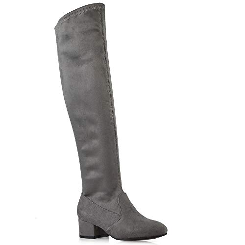 ESSEX GLAM Stivale Donna Thigh-High Zip-Up Punta Tonda Tacco Medio a Blocco Elasticizzato