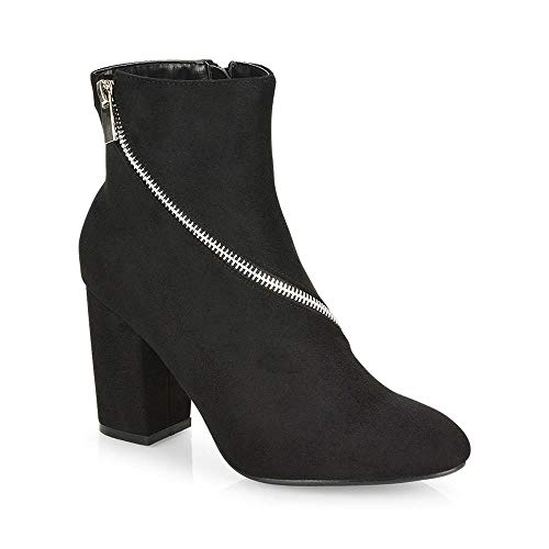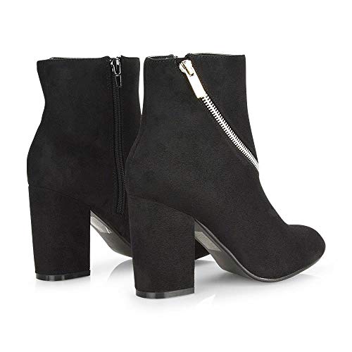 ESSEX GLAM Stivali Donna Nero Finto Scamosciato Cerniera Decorativa Tacco Medio Stivaletti Scarpe EU 36