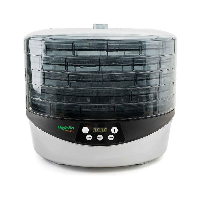 Compatto e facile da usare, il disidratatore Dejelin NutriDry ND500S è perfetto per imparare a conoscere la disidratazione. Il suo esclusivo sistema a doppia parete offre un'asciugatura uniforme dal primo all'ultimo vassoio. Un sistema rotante garantisce una distribuzione ottimale dell'aria calda all'interno di questo disidratatore. Pratico, permette anche di asciugare una grande stanza e si trasforma in yogurtiera grazie ai suoi vassoi modulari.Preciso controllo della temperaturaIl disidratatore Dejelin NutriDry ha un meccanismo di diffusione laterale dell'aria calda. I suoi vassoi a doppia parete forniscono una distribuzione omogenea dell'aria calda in tutto il recinto dell'apparecchio. Con il Dejelin ND500S ottieni una temperatura uniforme dal primo all'ultimo vassoio.Grazie al suo termostato digitale, il disidratatore Dejelin NutriDry offre una temperatura precisa e costante. Il suo range di temperatura risponde alle esigenze della cottura a crudo, garantisce preparazioni sane e
