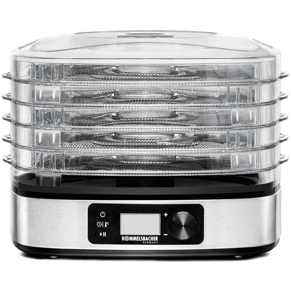 Per un''essiccazione delicata di frutta, verdura, erbe, funghi e altro ancora, il disidratatore compatto DA 350 completa idealmente la famiglia di disidratatori a base di Rommelsbach. L''essiccazione come la più antica forma di conservazione degli alimenti sta vivendo una rinascita moderna. Questo modo delicato di conservare senza additivi e conservanti è diventato parte integrante della cucina contemporanea. Naturalmente, questo si ottiene al meglio con la precisione della temperatura e l''uniformità con un disidratatore elettrico di alta qualità come il DA 350. I dörretages sono dotati di griglie a maglie fini in acciaio inossidabile igienico e, come caratteristica intelligente, sono persino regolabili in altezza. In pochissimo tempo, il volume viene raddoppiato. Il dispositivo funziona a risparmio energetico e silenzioso ed è anche facile da usare. La selezione della temperatura varia da 35 °C per il piacere dell''essiccazione cruda a 75 °C per una rapida disidratazione energetica. Insieme al timer di 36 ore, questo offre le massime possibilità di utilizzo. Due stampi in silicone per la produzione di 8 barrette di muesli completano questo moderno disidratatore. Deliziosi snack e dolci sani sono creati altrettanto comodamente come patatine fritte croccanti, tè, frutta secca per muesli e prelibatezze per animali. Non importa quale delle diete attuali segui o quali prelibatezze alla moda vuoi provare, il DA 350 è il compagno giusto.