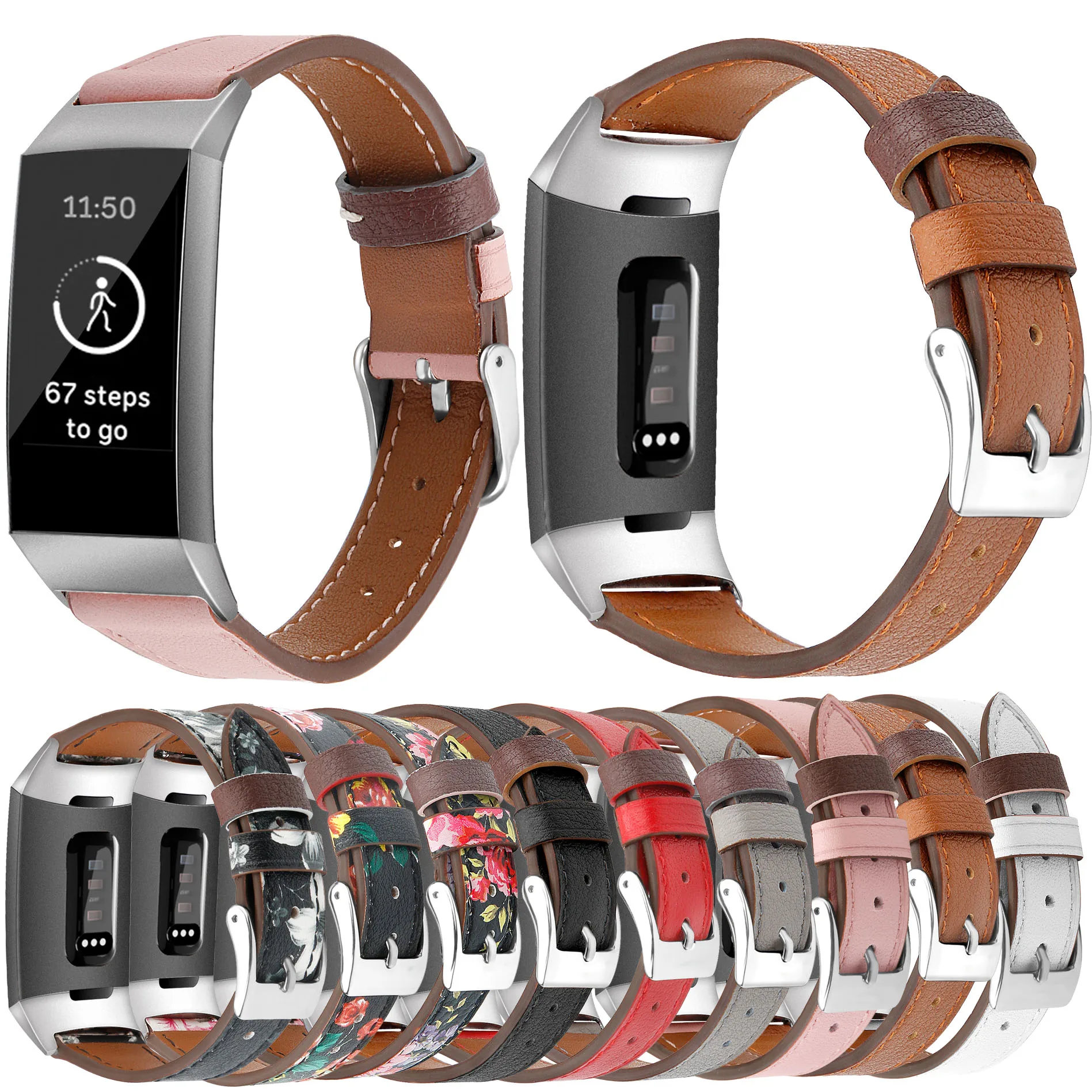 Essidi For Fitbit Charge 3 4 Leather Band Women Men Smart Bracelet Replacement For Fitbit Charge 3 4 Wristband Watch Strap Loop
