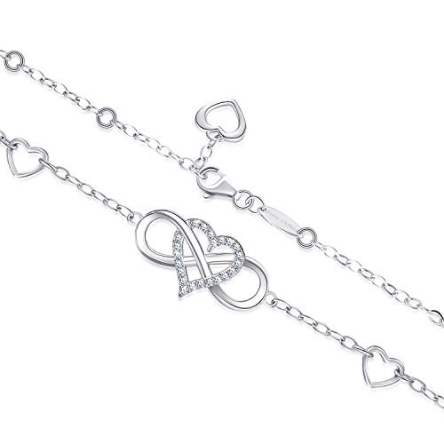 ESSIE ODILA Bracciale Donna Oro Blanco Placcato Argento 925 Rosario Braccialetti Ragazze Cuori Incisione Charm Regali di per Le Donne